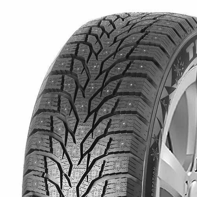 Квадратная форма боковин повышает устойчивость на поворотах, а дополнительное армирование защищает от повреждений при наезде на острые предметы или бордюры. Шипы с инновационным креплением - каждый металлический элемент снабжен гибким основанием, что снижает вероятность их выпадения.